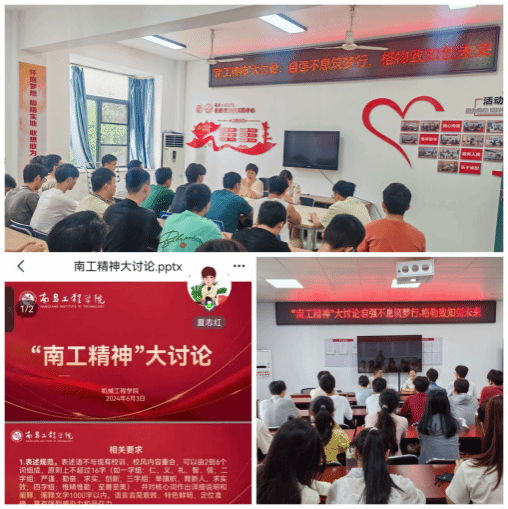 为深入挖掘和传承“南工精神”,近日,机械工程学院通过“三会一课”、教职工政治理论学习、主题党日、主题团日、主题班会等多种形式,在教职工、学生党员、团员及校友中广泛开展“南工精神”大讨论。