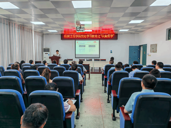 7月9日,机械工程学院党委联合人事处党支部开展“以案促学”警示教育。学院、人事处全体教工党员50余人参加。