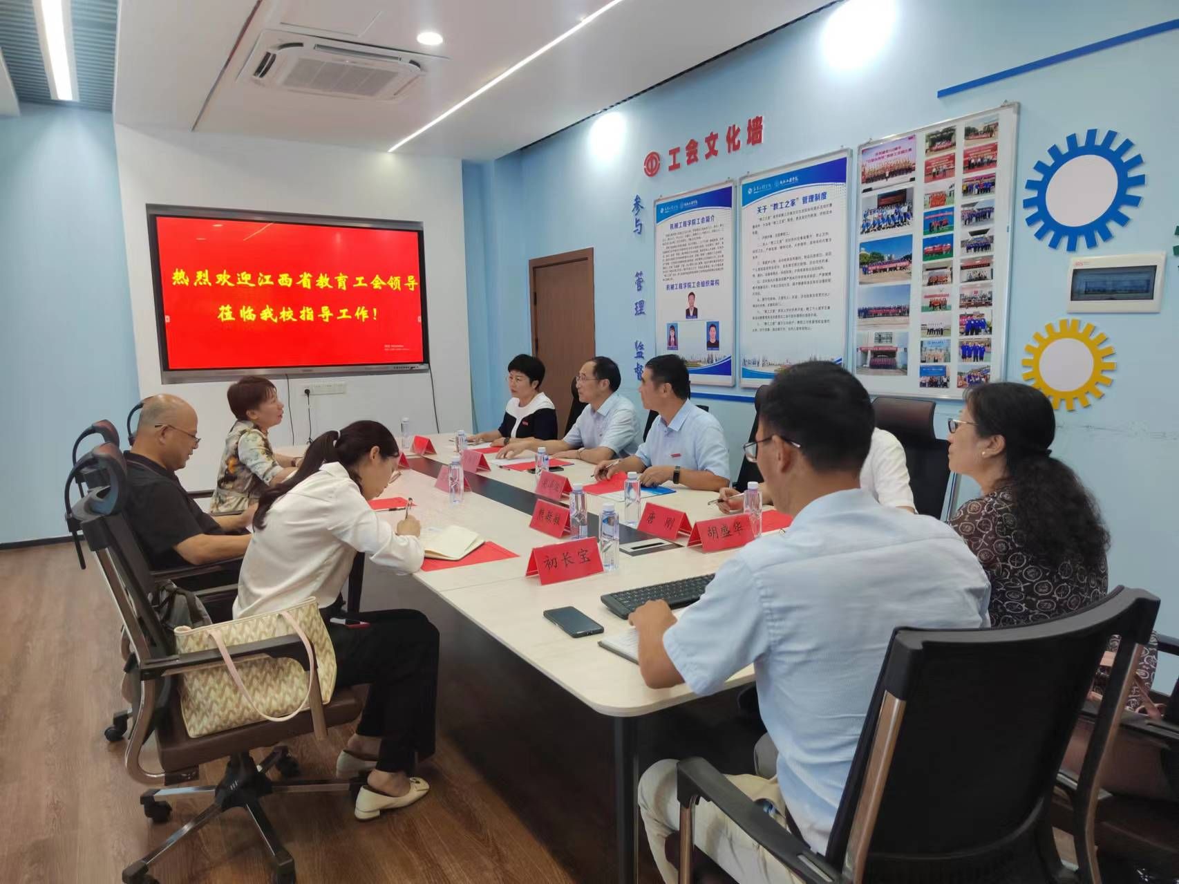 9月27下午,江西省总工会二级巡视员、省教育工会党支部书记蒋云国、江西省总工会经济技术部部长张建平、省教育工会主席宋懿非一行来我校调研模范职工之家(职工小家)和劳模工匠创新工作室创建情况。校长刘祖文、校党委副书记吴泽俊、副校长陆伟锋陪同调研。