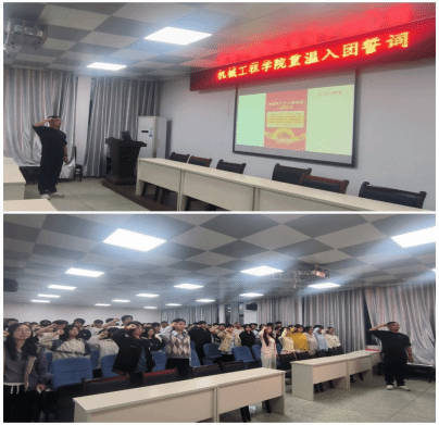 重温入团誓词,强化责任担当。学院组织青年团员在机电楼开展重温入团誓词的活动,不断强化学生的仪式感和责任感。