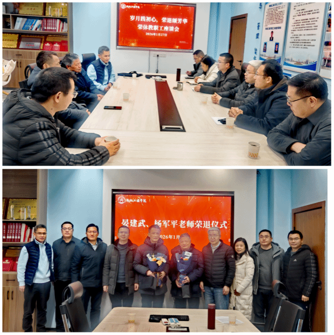 1月27日下午,机械工程学院为晏建武、杨军平两位教授举办了一场简朴而温馨的荣休座谈会。学院全体领导、工会委员与教师代表齐聚一堂,共同致敬两位教授数十载的奉献岁月。
