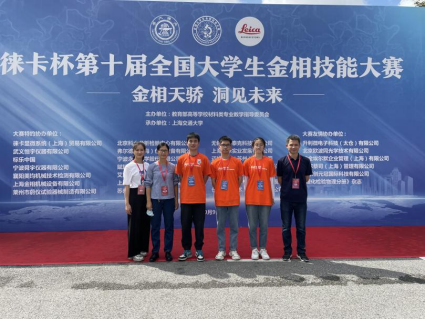 10月9日-10月14日,由教育部高等学校材料类专业教学指导委员会主办、上海交通大学承办“徕卡杯”第十届全国大学生金相技能大赛在上海交通大学举行。本届大赛共有来自全国370所高校的371支代表队1109名参赛选手参与。机械工程学院尹彬、王栌浥、胡天亮三位同学在沈智、安家菊、徐芳等老师的指导下代表我校参加此次比赛,经过复赛和决赛两轮激烈角逐,最终斩获团体一等奖第一名并夺得大赛最高奖“徕卡杯”。同时,尹彬获个人一等奖、并以本届大赛总成绩第一获得“徕卡特别奖”,王栌浥、胡天亮获个人二等奖。
