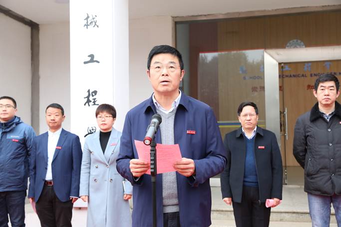 12月23日上午,南昌工程学院机器人现代产业学院揭牌仪式在我校机械电气楼举行,校党委副书记、校长汪胜前,校党委委员、副校长陆伟锋,校党委委员、副校长李培生出席仪式,机器人研发制造应用相关企业负责人、教务处负责人、机械工程学院班子成员、江西省精密驱动与控制重点实验室骨干成员、南昌市焊接机器人与智能化技术重点实验室负责人、机器人工程专业全体师生、机械工程学院研究生等150余人参加了揭牌仪式。揭牌仪式由陆伟锋主持。