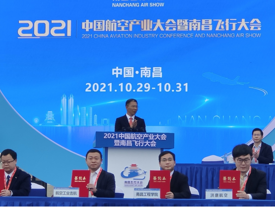 10月29日,2021中国航空产业大会暨南昌飞行大会在江西南昌瑶湖机场开幕,我校应邀参加开幕式。会上,副校长贺丹君代表学校与航空工业吉林航空维修有限公司签署校企合作协议,共建南昌工程学院先进制造产业学院(吉航班),教务处、机械工程学院相关人员陪同。