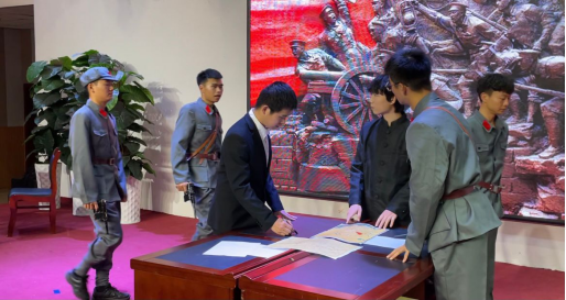 10月10日—13日,机械工程学院“河山统一”红色走读队在大学生活动中心多功能厅一楼拍摄情景剧。前期,在国庆长期期间,“河山统一”团队走进了八一南昌起义纪念馆进行实地走读,之后通过拍摄原创情景剧的方式和大家一起重温红色岁月,缅怀峥嵘历史。