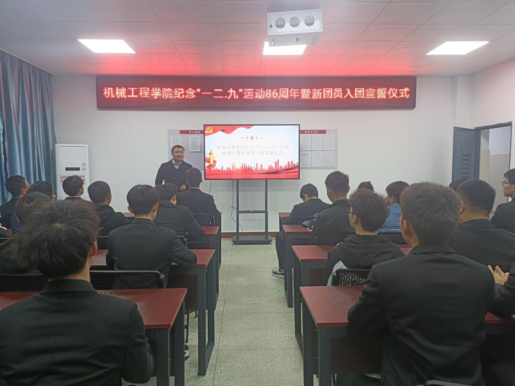 为纪念一二九运动86周年,弘扬爱国主义精神,加强学院团组织队伍建设,增强团员的责任感和使命感,12月10日,我院团委在机电楼304会议室举办纪念“一二.九”运动86周年暨新团员入团宣誓仪式。学院团委老师、团员代表以及新团员等40余人参加仪式。
