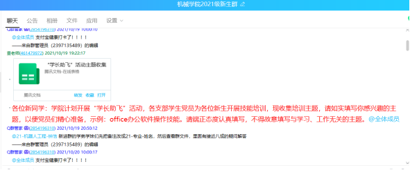 为帮助2021级新生尽快适应大学生活,培育优良学风引领学生成长,深入推进“我为群众办实事”实践活动,机械工程学院自10月19日开始,启动了为期一个月的“学长助飞”活动。