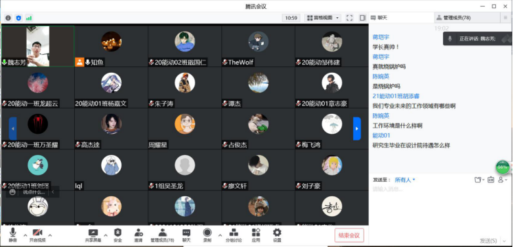 6位校友都是来自水利水电设计规划院、国网、国电投、医疗设备公司、风电企业等一线员工。他们中有的本科毕业已工作三年、有的即将研究生毕业开始工作、有的研究生毕业工作还不满一年。他们从不同的角度分享了能动专业不同学历层次的就业前景、应聘技巧、薪资待遇、晋升渠道等等众位同学极为感兴趣的话题。
