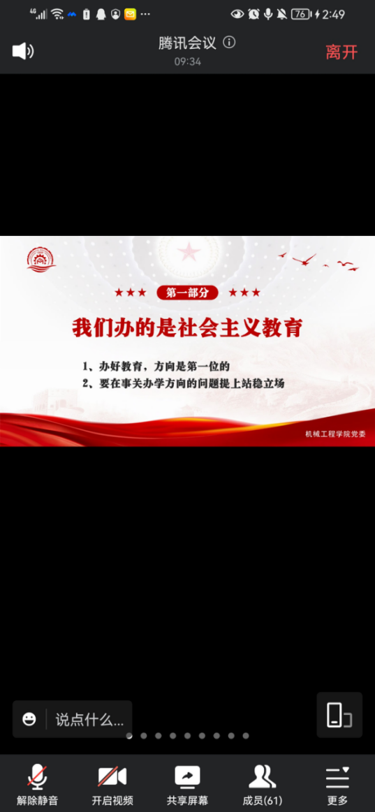 近日,机械工程学院组织开展线上教职工政治理论学习,全体教职工参加。学院书记夏志红带领大家共同学习了2022年中央统战工作会议上习近平总书记重要讲话精神和《习近平总书记教育重要论述讲义》第四讲内容。