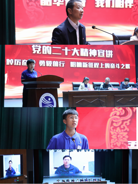 学院党委书记夏志红为大家解读了二十大报告中的新表述新概括新论断,宣讲党的二十大精神,对全体新生提出三点期望:一是巧用“革命理想大于天”的“信念之笔”,点燃“信念之火”,做信念如磐的有德青年;二是巧用“不辞辛苦出山林”的“初心之笔”,点燃“使命之火”,做底子过硬的有志青年;三是巧用“不破楼兰终不还”的“斗争之笔”,点燃“奋斗”之火,做攻坚克难有为青年。