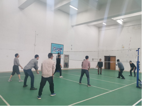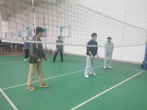 与师生进行排球赛。运动场上,李培生作为普通队员参加了机械工程学院“‘健康南工行’师生气排球友谊赛”,和师生们一起练就强健体魄,增强集体意识。