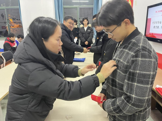 老党员代表、各学生支部书记为新党员代表们佩戴党员徽章、赠送党章。学院党委副书记张丽玲寄语新党员们进一步加强政治理论学习,提高明辨是非的能力;进一步加强自身综合素质修炼,提升自我行为规范;进一步加强党性锻炼,力所能及的做好党组织安排的各项任务。