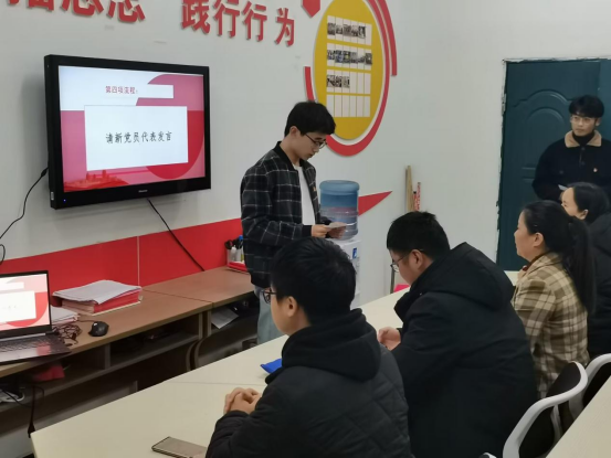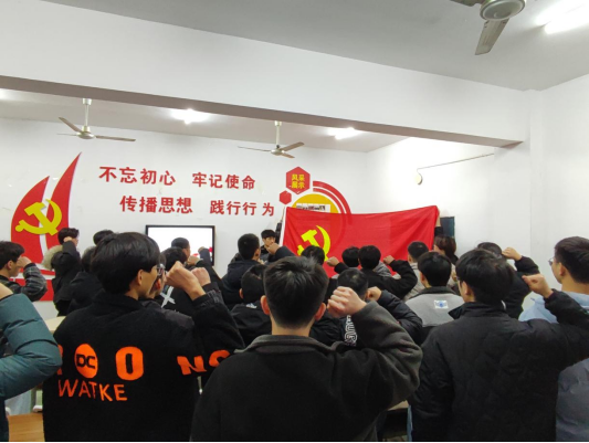 党员们集体观看了视频《抗战史上的今天——一二·九》,共同回首那段国难当头、青年振奋的激荡岁月。20机械制造及其自动化预备党员李孟杰同志做代表发言。入党宣誓仪式从雄壮的《义勇军进行曲》中开始。预备党员面对着党旗庄严宣誓,句句铿锵,声声有力。他们代表全体青年做出承诺,热爱祖国,不负青春,自强不息,矢志不渝,在日后的学习生活中自觉担负起光荣的责任和使命。