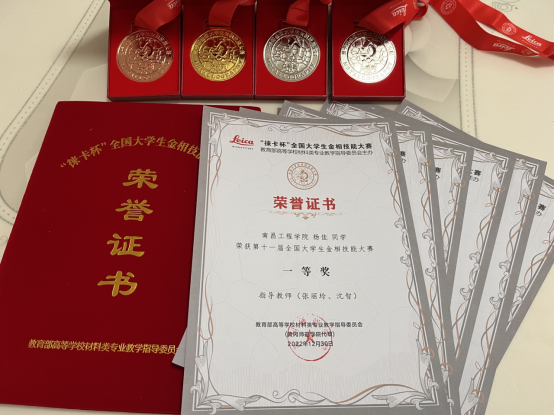 机械工程学院在2022年3月初启动金相大赛集训与选拔工作,5月底组织了校第二届“恒宇杯”金相技能大赛,7月初组队参加第六届江西省金相技能大赛,确定4名选手前往分赛区江西科技师范大学参加国赛。参赛师生在疫情反复的不利影响下,坚持训练、严格要求、精益求精,最终不仅在国赛中出色发挥,表现出优秀的金相技能水平,也展现了团结协作的精神风貌,来自20级材料成型及控制工程专业的杨佳同学获得一等奖,黄超获得二等奖,张义星、郑永涛获得三等奖。