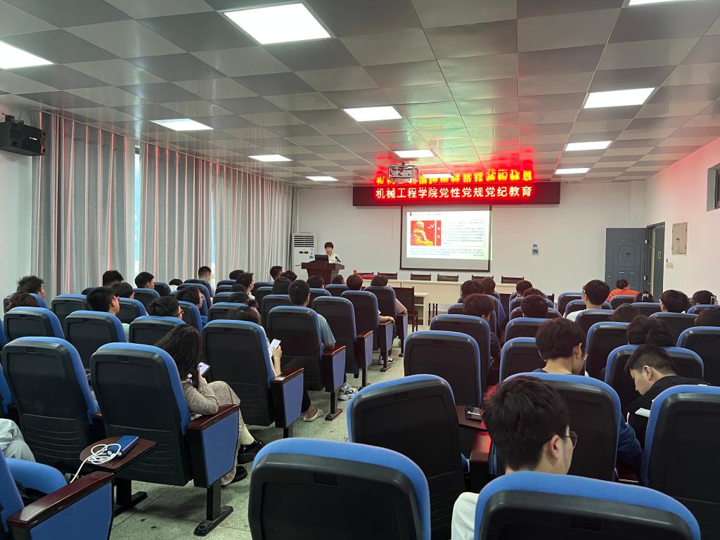 为了贯彻落实2023年全面从严治党暨党建工作会议精神,进一步加强对党员和入党积极分子的教育和管理,4月18日下午,机械工程学院开展党性党规党纪教育,学院党委负责人讲授《把党规党纪刻印在党员心上》的专题党课,60余名师生参加。