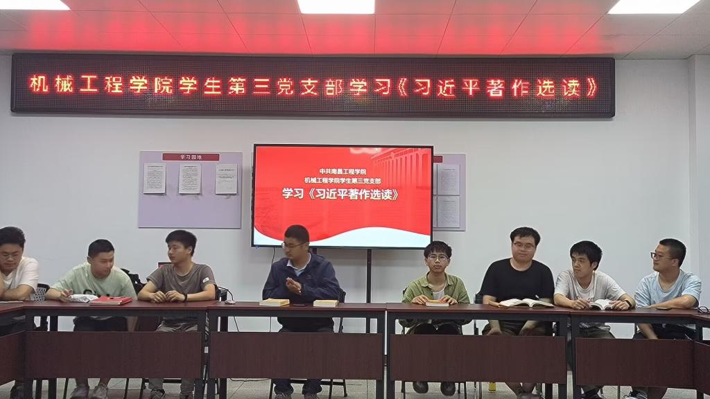 为进一步学习贯彻党的二十大精神,将学习贯彻习近平新时代中国特色社会主义思想主题教育要求落到实处,5月22日晚,机械工程学院第三学生党支部在机电楼A408会议室组织支部党员集体学习《习近平著作选读》第一卷、第二卷。