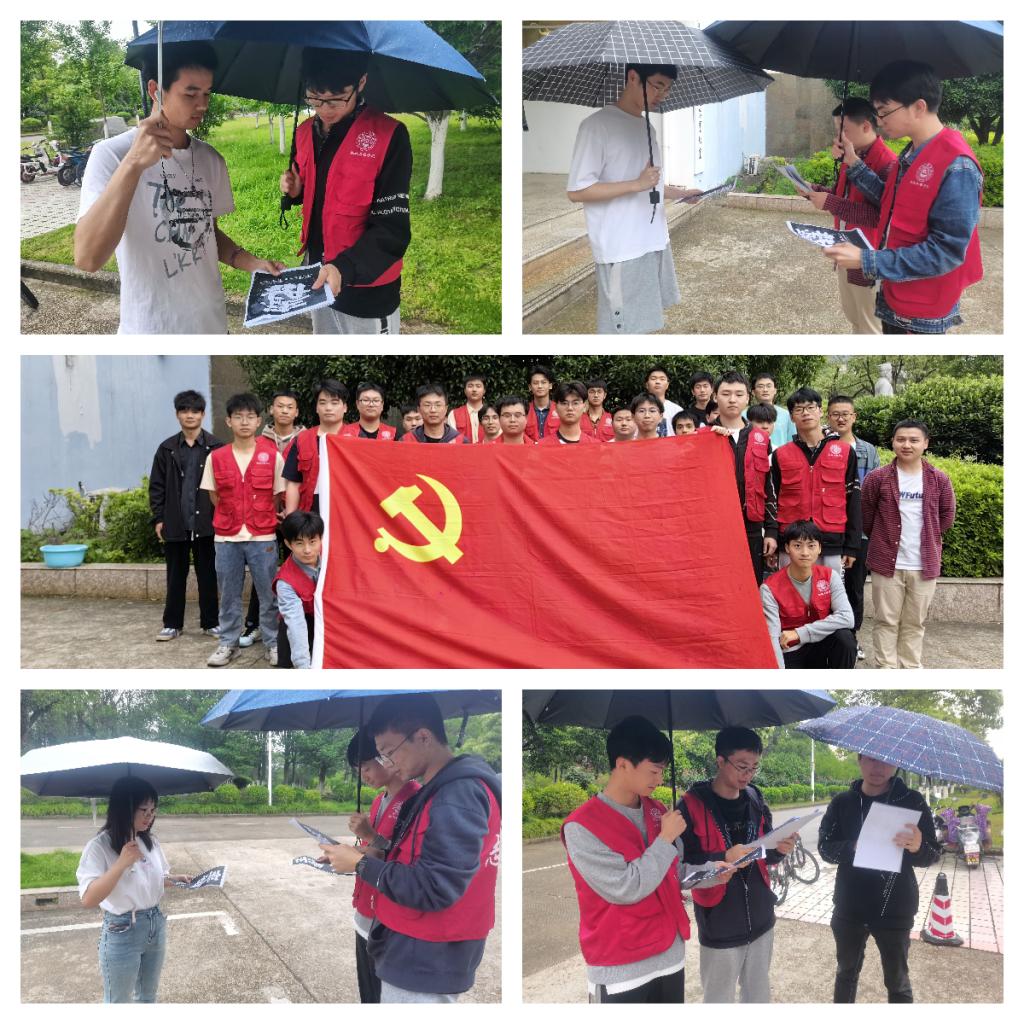 活动中,支部党员分为两组,一组开展清洁卫生, 美丽学院的打扫卫生活动, 党员们义务打扫机电楼门口并擦洗附近的指示路牌;另一组开展禁毒知识宣传,党员们通过发放宣传单,向经过的同学们讲解禁毒知识,不断提升同学们的禁毒意识。