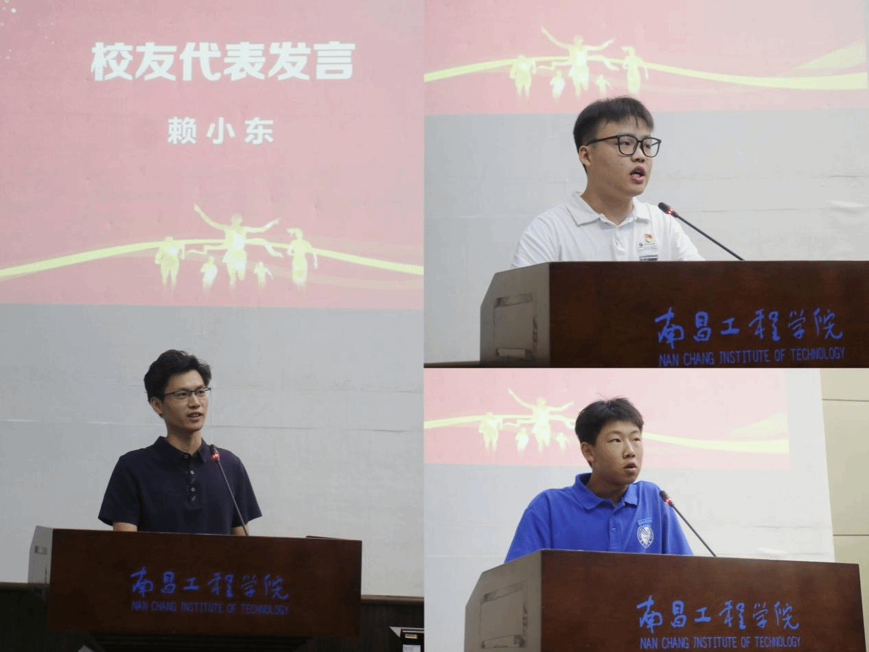 2023机械制造与自动化专业刘亚飞同学作为新生代表发言,优秀校友赖小东和吴济水作为校友代表为同学们送来宝贵经验和真诚祝福。