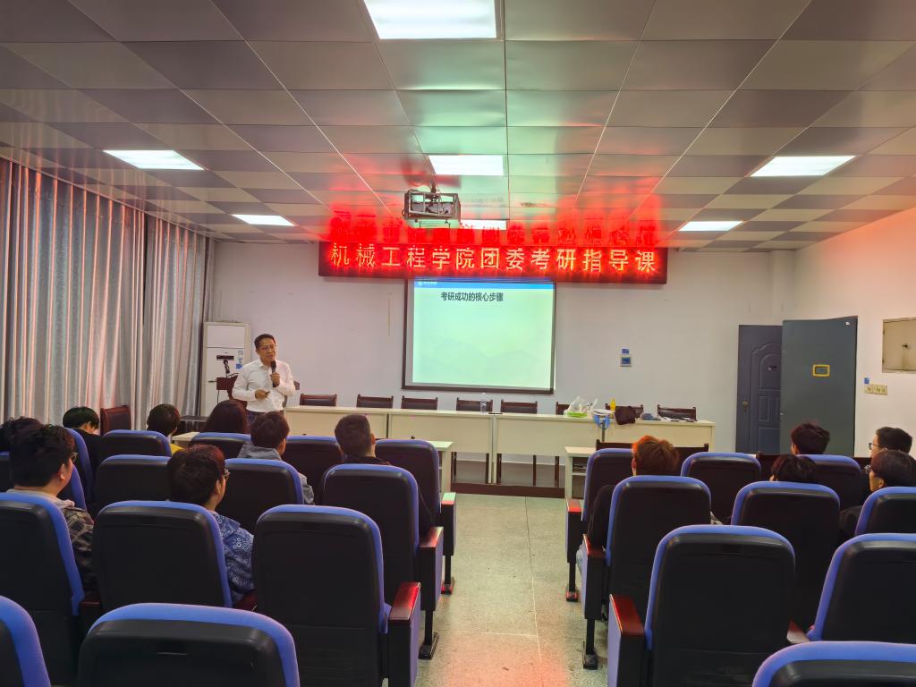 3月16日晚,机械工程学院团委在机电楼A304组织开展考研指导课,学院邀请聚创考研名师来院指导,学院2020级各专业考研学生100余人参加。