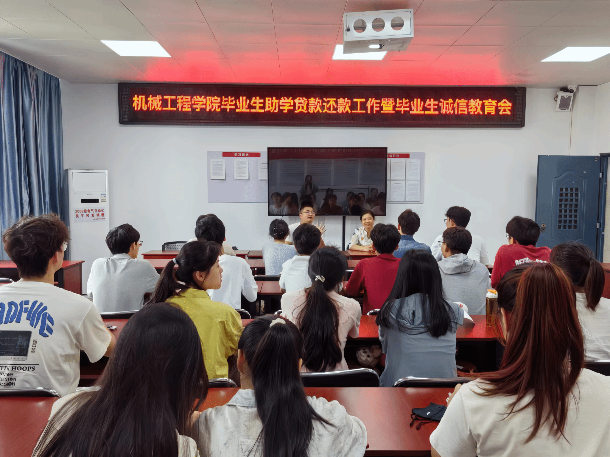 为进一步做好2024届毕业生助学贷款后管理工作,增强学生诚信意识、责任意识和金融防诈骗意识,切实提高资助育人水平和效果,5月28日上午9点,机械工程学院召开毕业生助学贷款还款工作暨毕业生诚信教育会,学院学生工作负责人、辅导员、有贷款的毕业生参加此次会议。