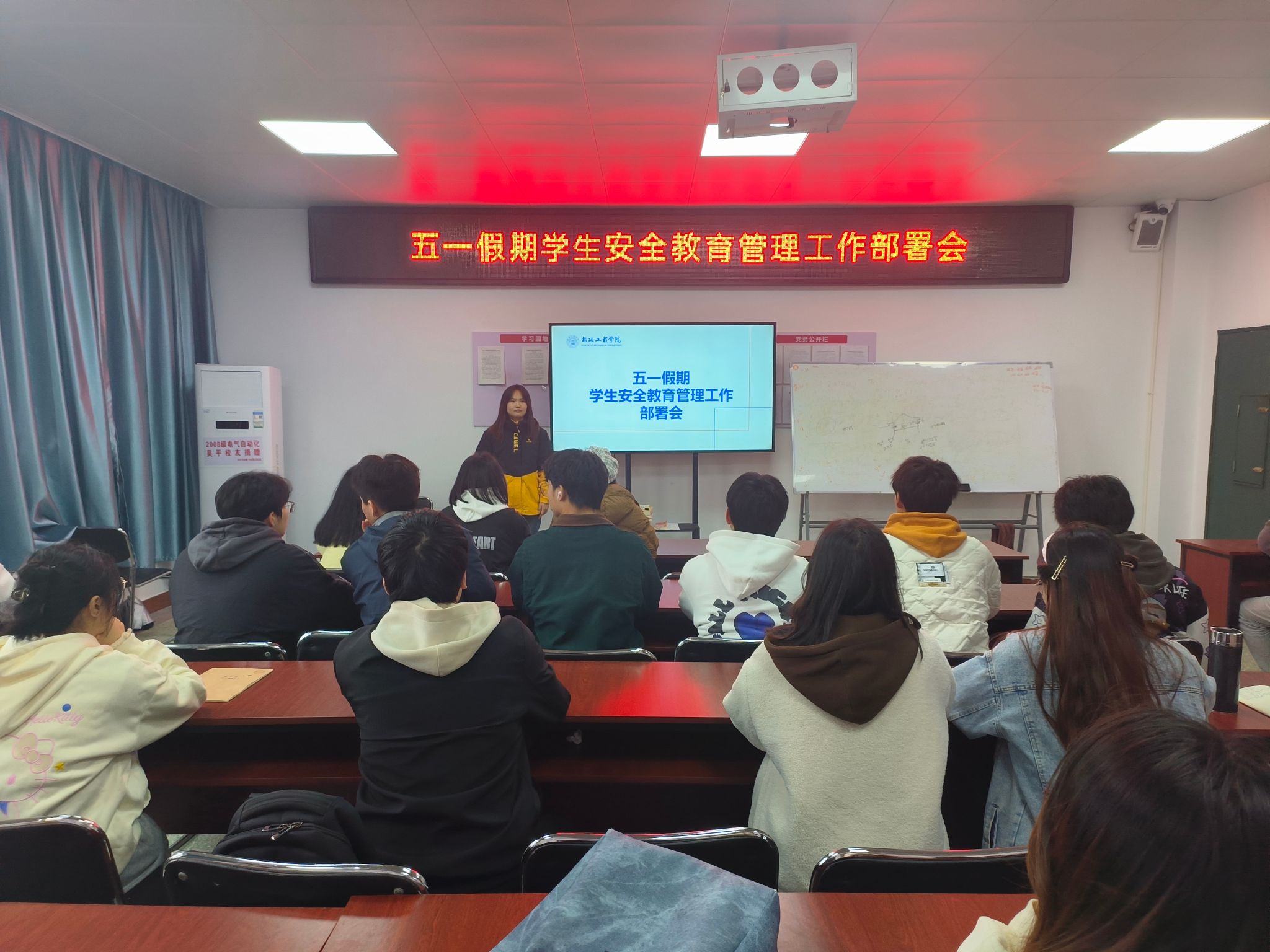 4月28日,机械工程学院在机电楼A406召开“五一”假期学生安全教育管理工作部署会。各班级班长、团支书参加。会议由学院团委学生会主席主持。