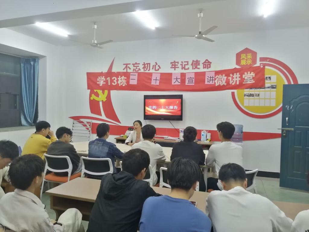 11月9日晚,我校学习贯彻党的二十大精神辅导员宣讲团成员、机械工程学院党委副书记张丽玲来到13栋新时代文明实践中心宣讲党的二十大精神,机械工程学院党员代表、团学干部代表、各班级代表共50余人聆听宣讲。